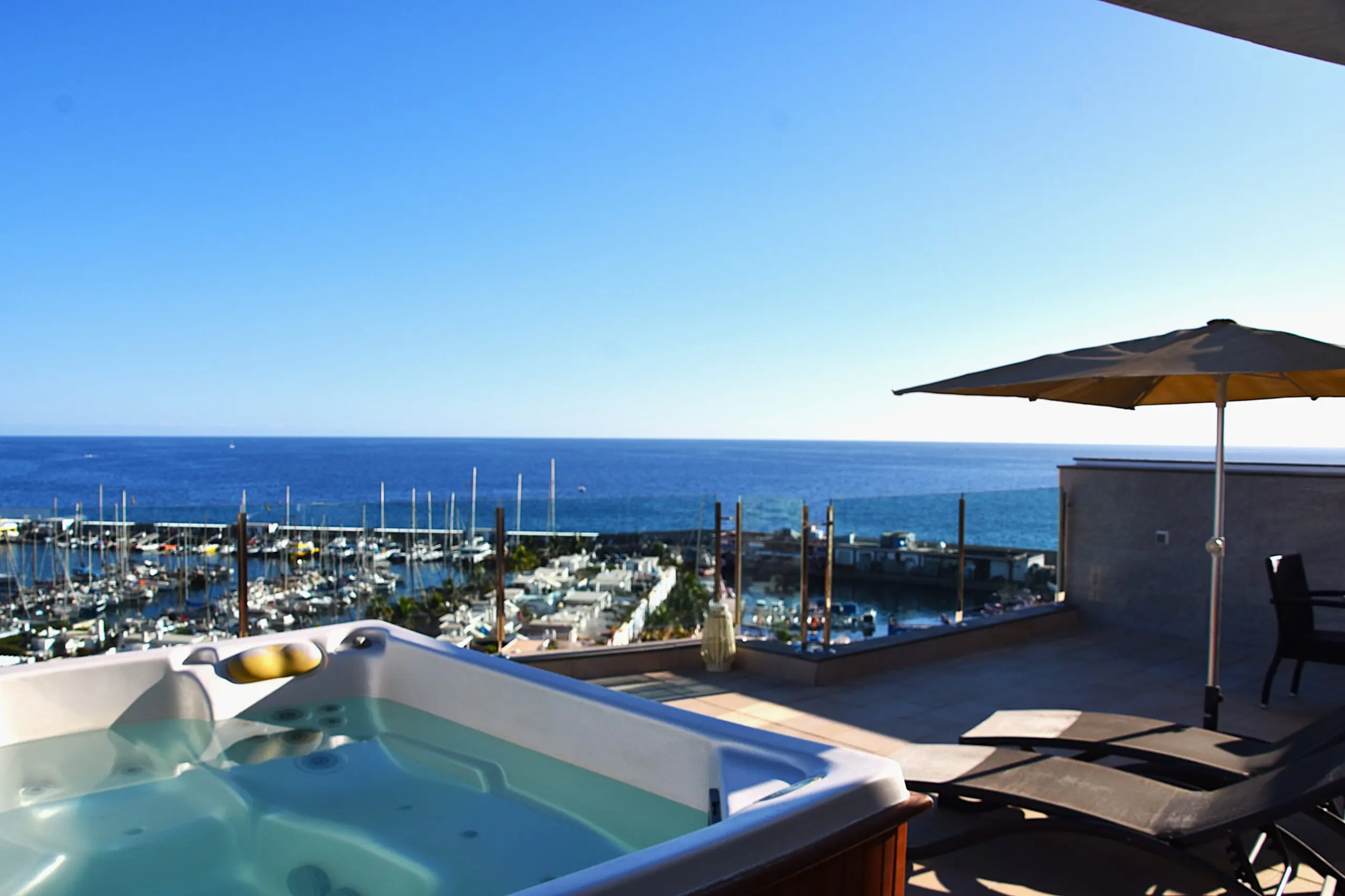 On the shared rooftop (between 4 apartments), you can enjoy sun loungers, a hot tub, and a dining area with excellent views.