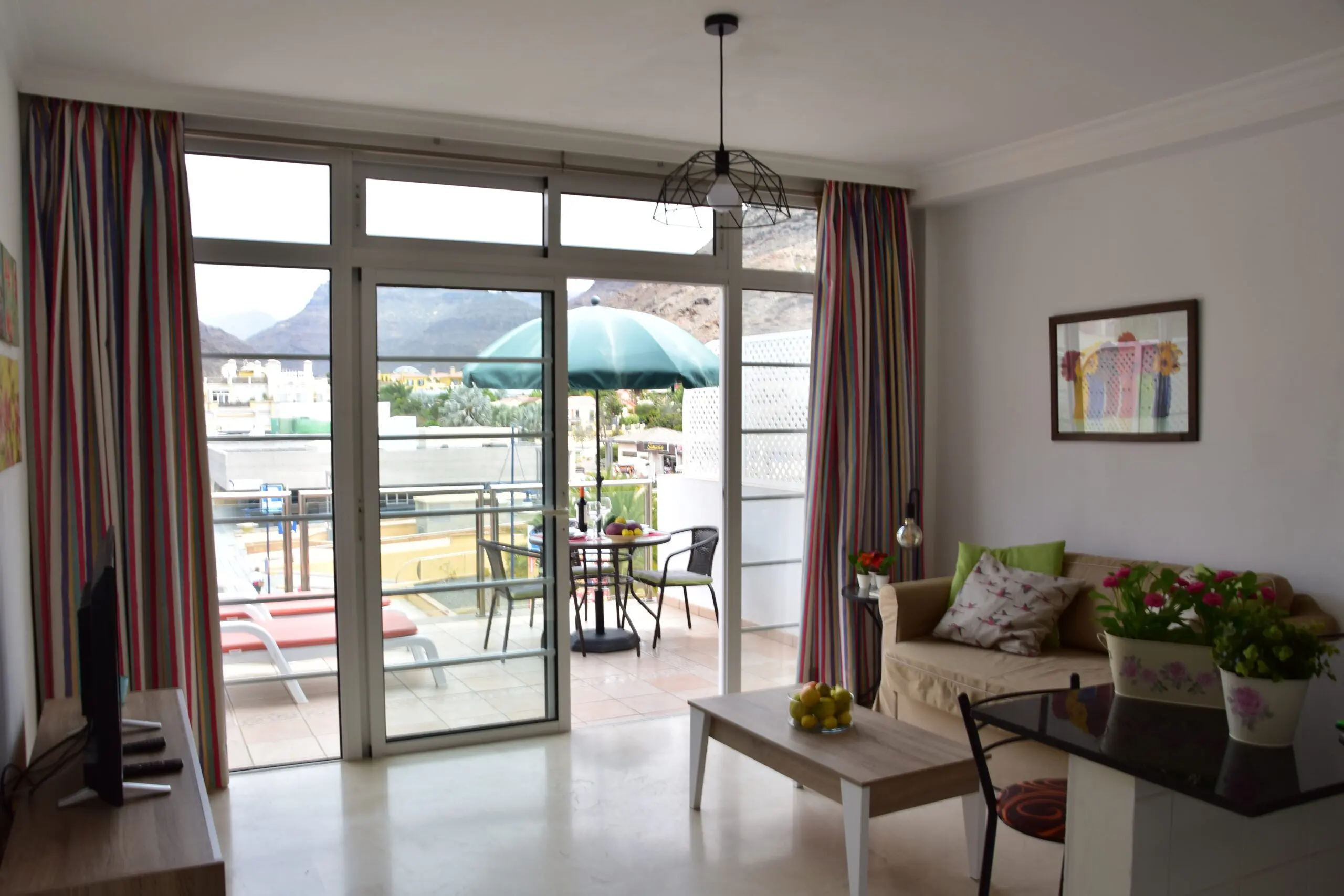 Magnificent apartment with a spacious terrace and rooftop solarium, ideal for enjoying the excellent climate of Puerto de Mogán all year round. Its outdoor space is perfect for relaxing, sunbathing, or having al fresco meals in a peaceful and pleasant environment.